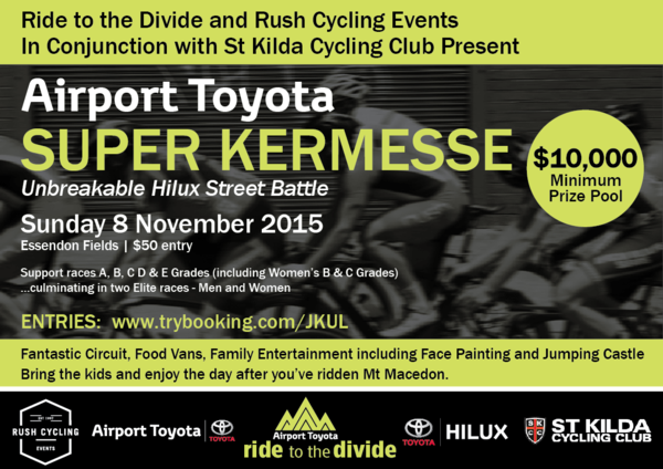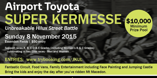 Airport Toyota Super Kermesse! This is a Cycling Victoria Open event.