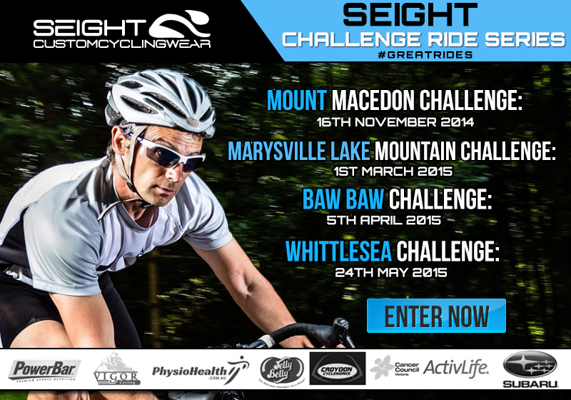 The 2015 Seight Challenge Series is a group of four (4) Recreational rides hosted by Cycling Victoria. Each event provides a unique mix of picturesque scenery and testing cycling terrain for all types of riders.