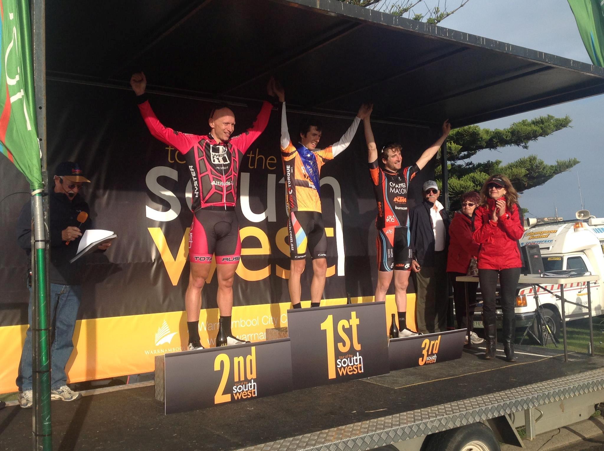 I would like to congratulate (in no particular order) all the riders and teams that made the trip to Warrnambool for the Tour of the South West, the Race Organisers, Race Officials and Cycling Victoria for enabling the Tour of the South West to run. I would especially like to congratulate Eric and Jason on their races; both produced great performances and never yielded right to the end. Last but not least a big thank you to my team mates and all the staff of Total Rush this one was for you, thank you for all your support.